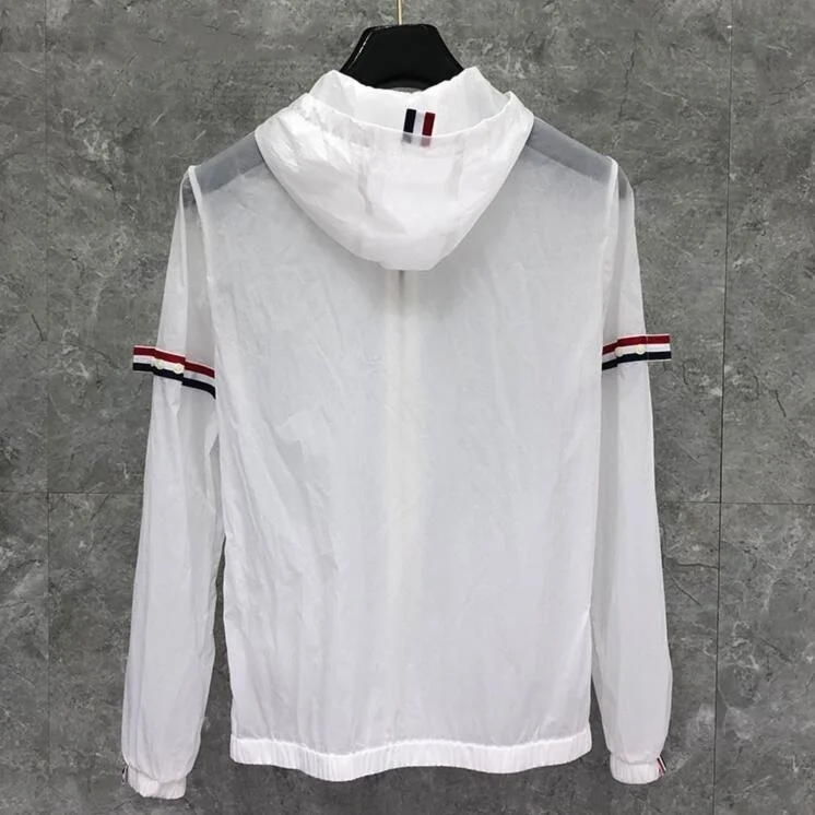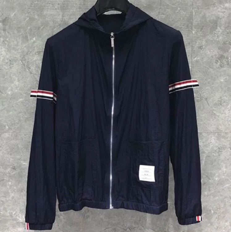 Special Offer 2021テラバイトファッショントムブランドのジャケットの男性ストライプスリーブuv太陽保護屋外スポーツコートカジュアルフード付きスキンウインドブレーカー Discount (10%OFF) Today!