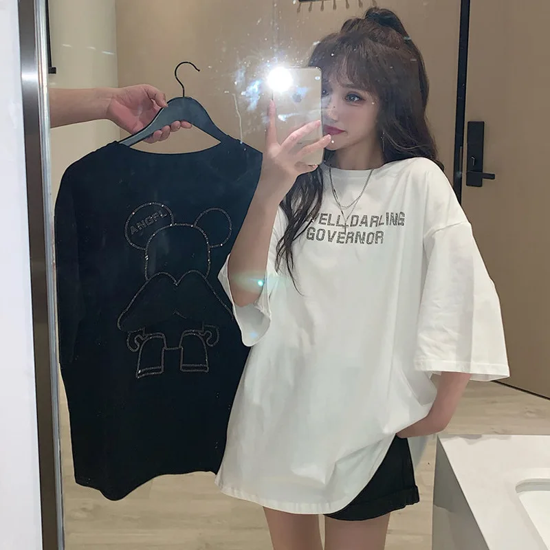 Special Offer カジュアルゆるいファッションの基本的レタープリントすべて一致特大カレッジ風ストリートホット販売女性半袖トップtシャツ Discount [NEW!!] Today!