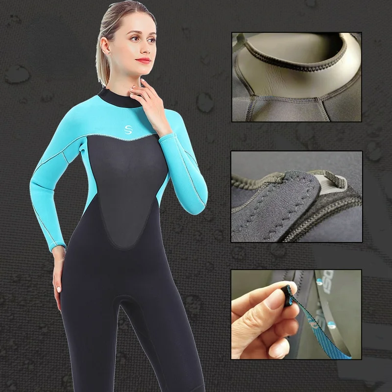 Special Offer 高品質のフルボディウェットスーツ,長袖,スキューバダイビングとシュノーケリング用の保護バックジッパー付き,女性用 Discount (10%OFF) Today!