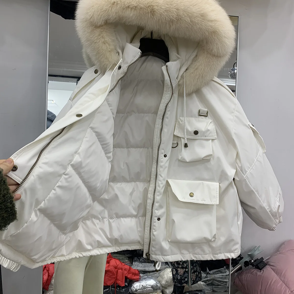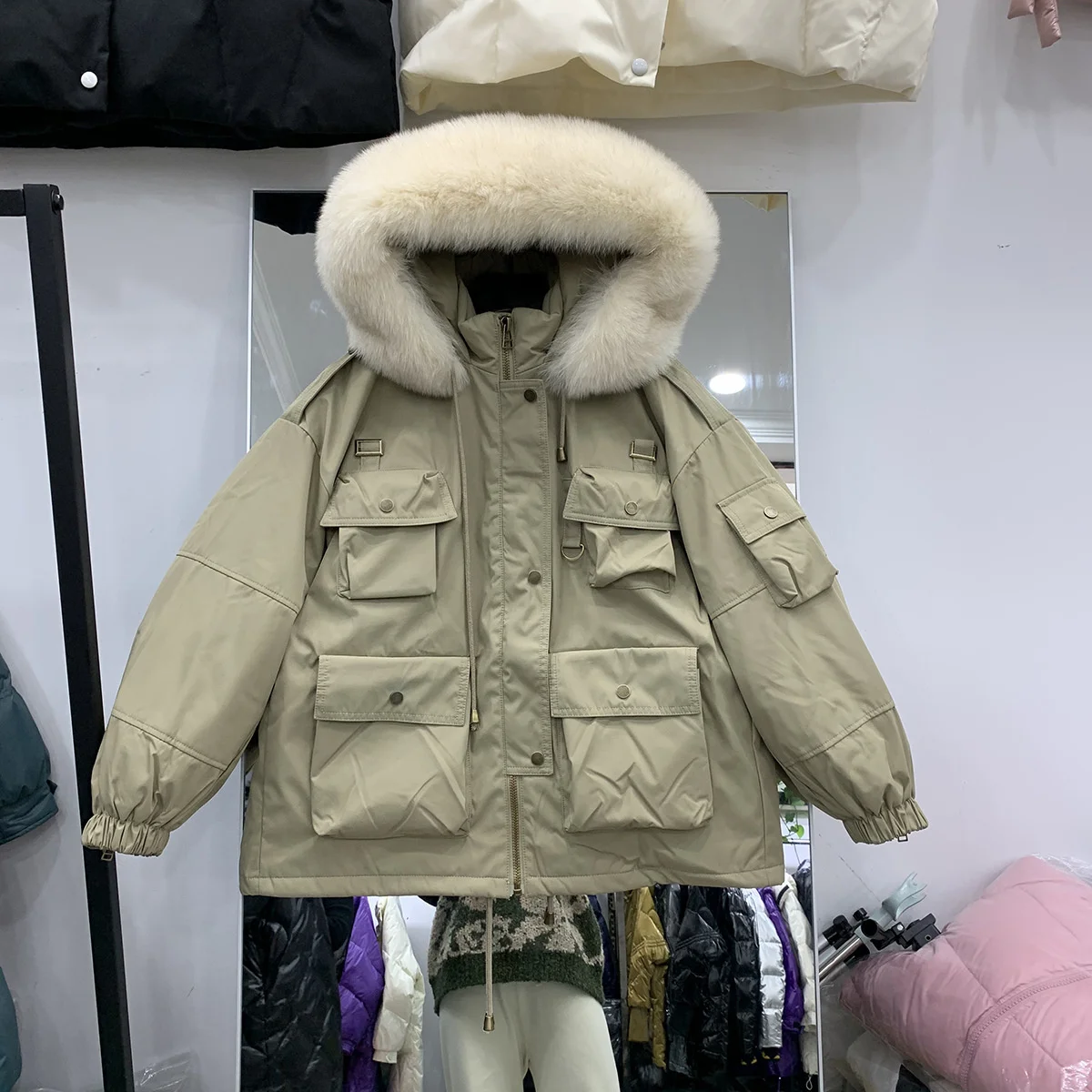 Product Name: 女性の冬のジャケット,韓国のファッション,大きな襟,厚手のコート,トレッキング,キャンプ,ハイキング